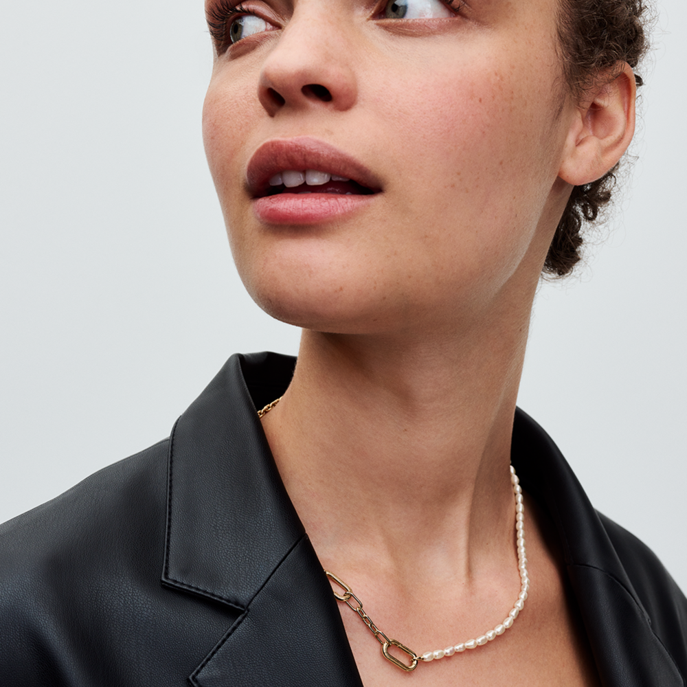 החל מעגילי חישוק קלאסיים עשויים כסף סטרלינג 925 איכותי עם פנינת בארוק שתעניק ללוק שלך טאץ' אלגנטי במיוחד, ועד לשרשרת מקולקציית Pandora ME החדשה שלנו, המורכבת מחוליות טרנדיות בשילוב פנינים. הניגודים בין לינקים אדג'יים ופנינים נקיות ואלגנטיות יוצרות מראה ייחודי שימשוך את כל תשומת הלב. תוכלי למצוא את השרשרת הזאת גם בכסף סטרלינג וגם בשיין (ציפוי זהב 14 קראט). אז גם את מעדיפה תכשיטים כסופים, או אם את במוד של זהב צהוב ובולט – יש לנו בדיוק את מה שאת מחפשת. רוצה להשלים את הלוק? תוכלי גם למצוא צמיד לינקים תואם עם פנינים.