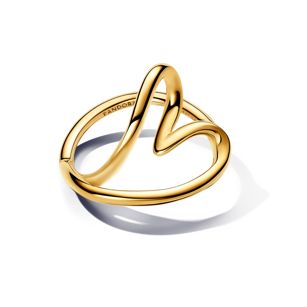 טבעת גל ציפוי זהב לב מנצנץ