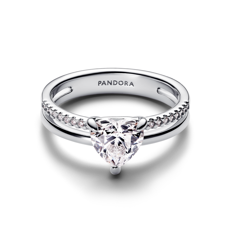 טבעת כסף לב ורוד מנצנץ