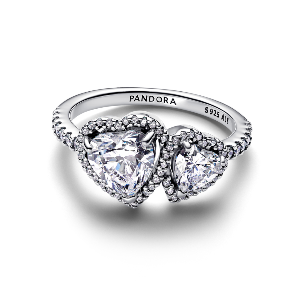 טבעת כסף דאבל לב מנצנץ