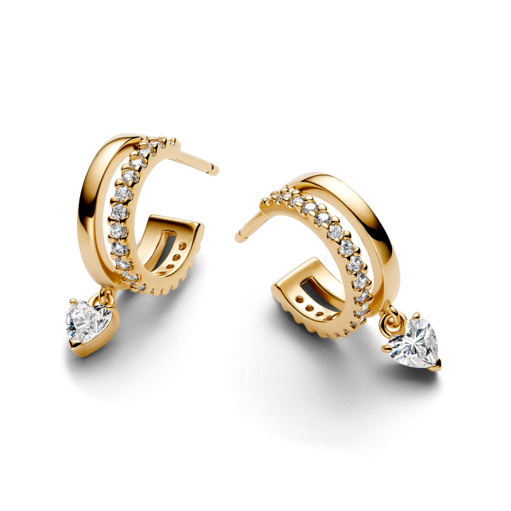 עגילי חישוק תליון לב ציפוי זהב