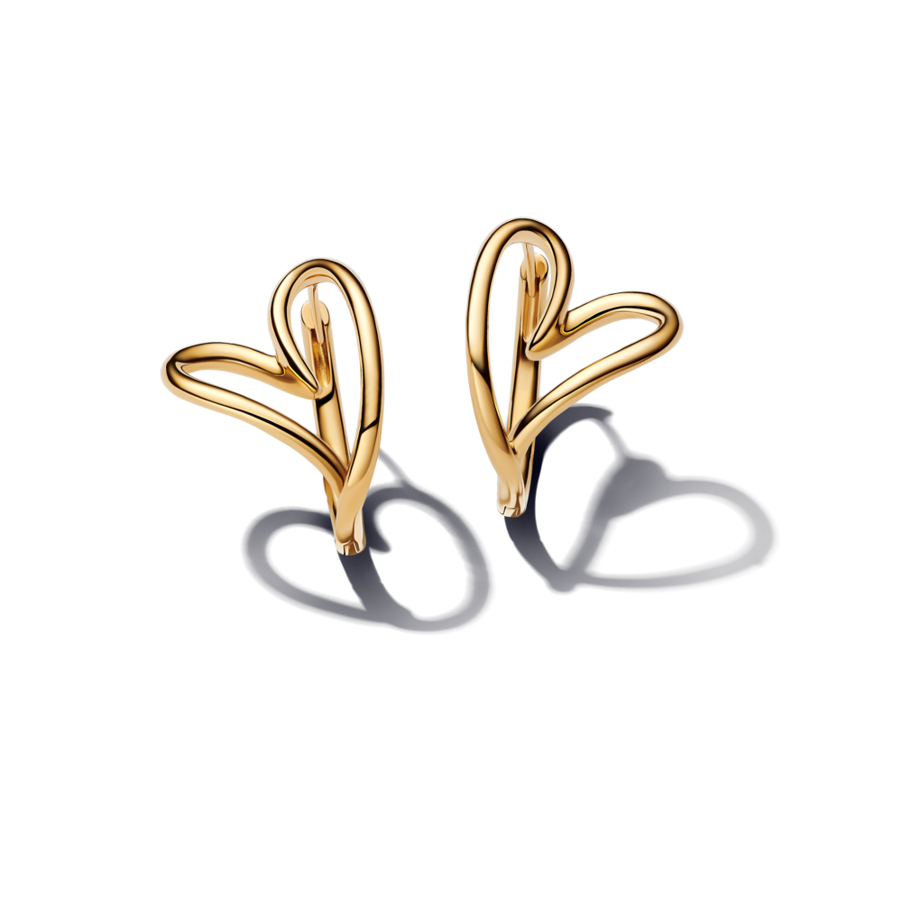 עגילי חישוק ציפוי זהב לב מאויר