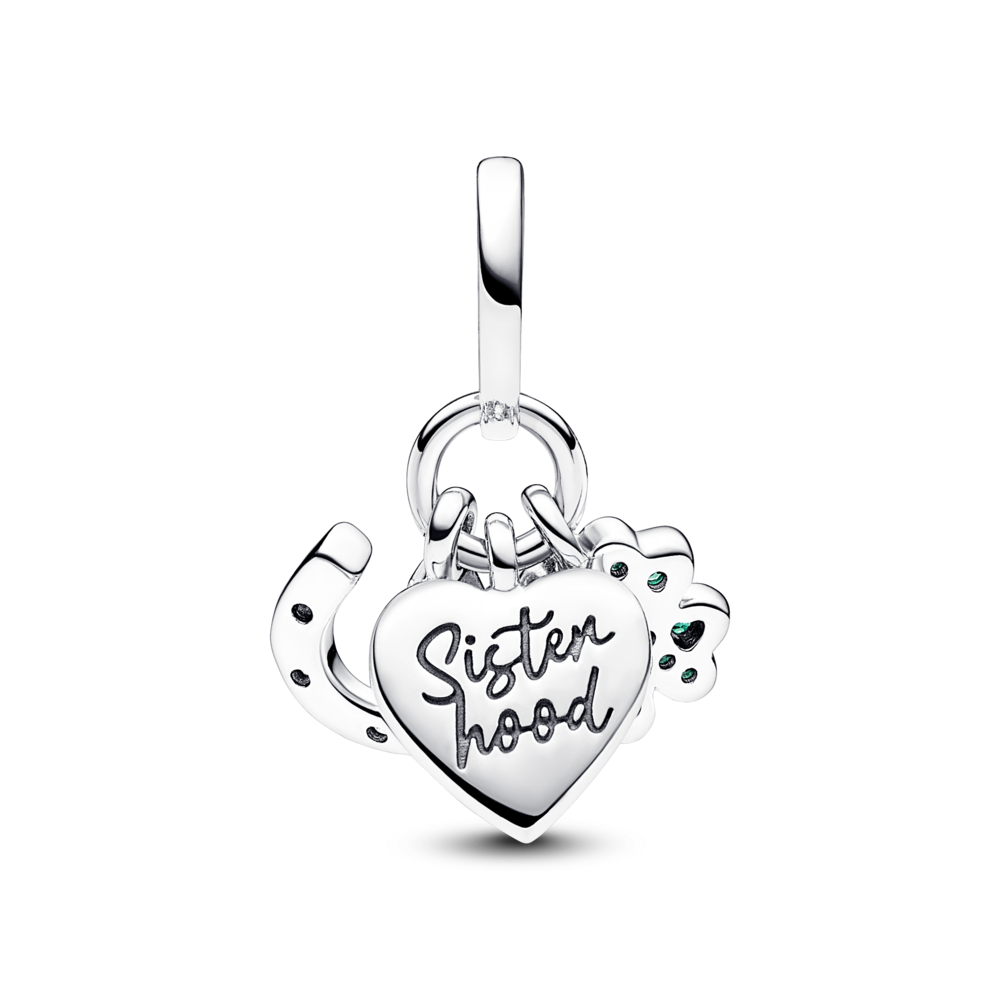 BLACK FRIDAY SALEתליון כסף Sisterhood פרסה, לב ותלתן