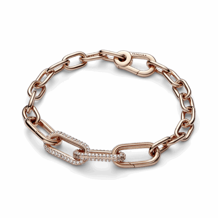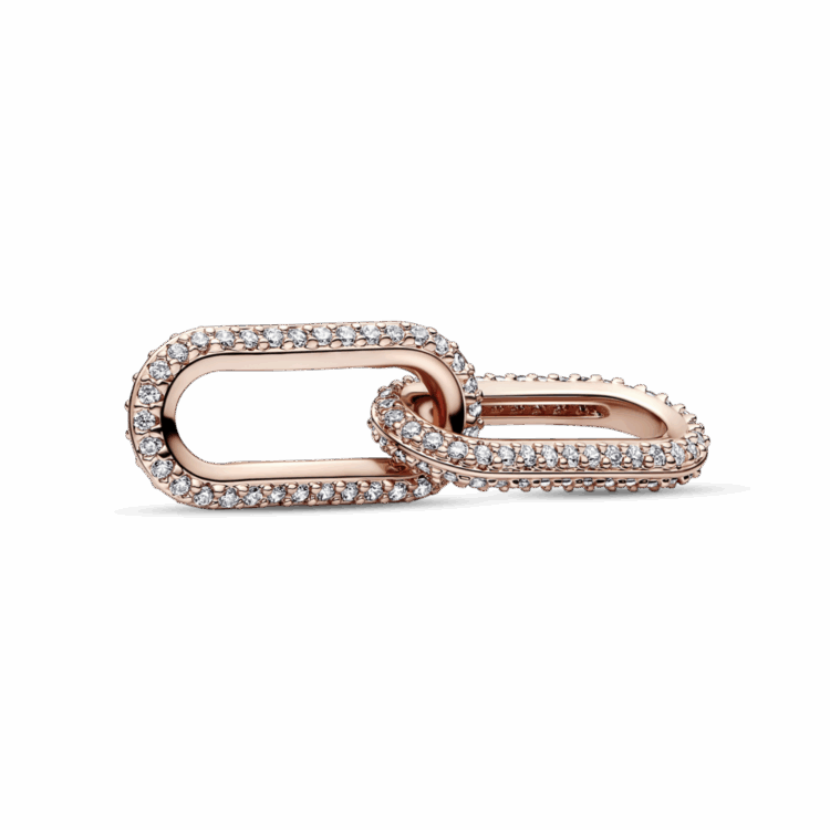העניקי לשרשראות שלך תוספת זוהר עם לינק סטיילינג פאבה כפול Pandora ME זה. תכשיט זה, עם ציפוי זהב רוז 14 קאראט בגימור עבודת יד, עשוי משני קישורים משתלבים המשובצים בשתי שורות של זירקוניה קובית שקופה עגולה בחיתוך מבריק. ענדי את שלך בין מחברי סטיילינג על גבי צמידים או מחרוזות משרשרת לינק Pandora ME, או תלי אותו על זוג חישוקים כדי ליצור סטייטמנט ייחודי. טיפ לסטיילינג: אורך הלינק הכפול תואם לאורך של שני לינקים רגילים, ארבעה לינקים משתלבים קטנים או לינק סטיילינג אחד – למען התאמה אישית קלה.