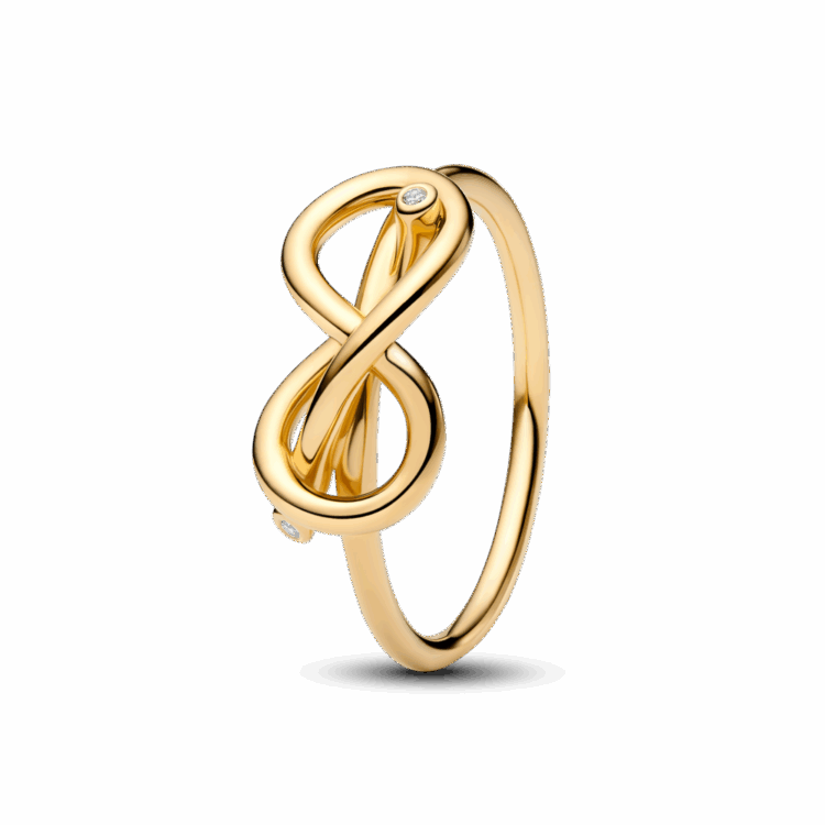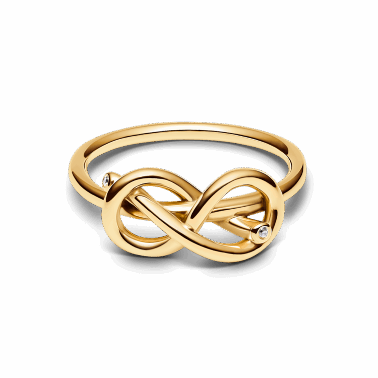 שיק נצחי: טבעת בציפוי זהב 14 קראט בצורת קשר אינפיניטי עם זרקון נוצץ בקצה. היא תשתלב בקלות בכל לוק קזואלי וגם תתאים לאאוטפיט הצהרתי בערב. היא מביאה איתה את כל הסמליות של אהבה נצחית.