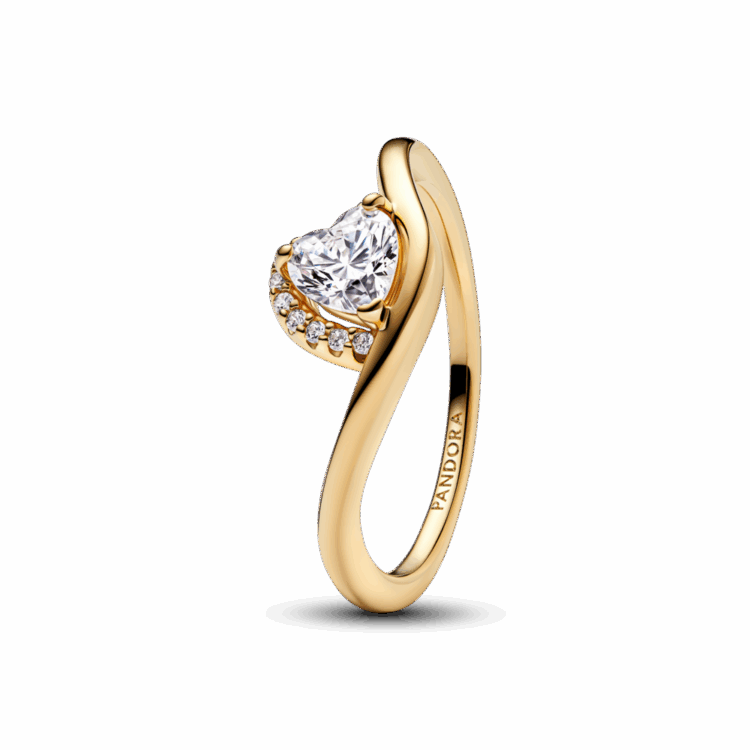 טבעת המעוצבת בקווים גליים החובקת אבן בצורת לב בעיצוב ייחודי ואלגנטי. היא מצופה זהב 14 קראט ומציגה אבן גדולה בצורת לב ושורת זרקונים הצמודים אליה. התכשיט מעוצב בקווים מודרניים בסגנון זורם ומרשים, הוא ישתלב בצורה מושלמת עם תכשיטים נוספים בגווני זהב.