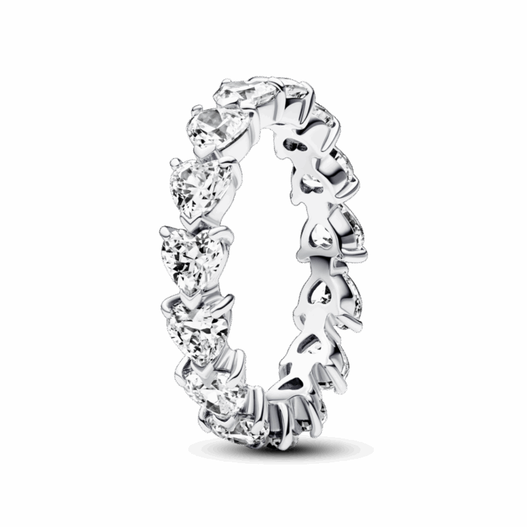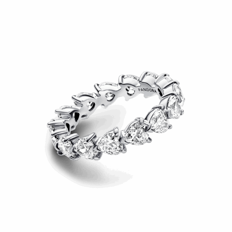 הצהירי על האהבה הגדולה שלך עם טבעת האיטרניטי, העשויה כסף סטרלינג עם שורת לבבות. היא מורכבת מאבנים בצורת לב ושיניים בצורת V החוזרות על עצמן כדי ליצור את טבעת האהבה האינסופית הזאת. ענדי אותה כסמל לאהבה נצחית או שלבי אותה עם סגנונות נוספים של טבעות מקולקציית Pandora Timeless.