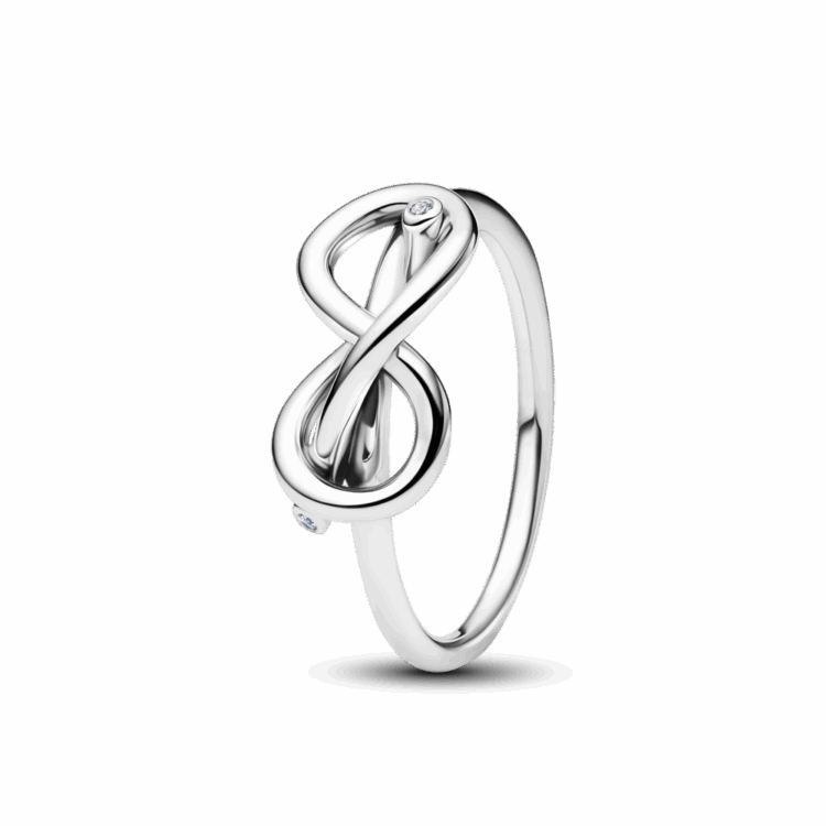 שיק נצחי: טבעת כסף סטרלינג בצורת קשר אינפיניטי עם זרקון נוצץ בקצה. היא תשתלב בקלות בכל לוק קזואלי וגם תתאים לאאוטפיט הצהרתי בערב. היא מביאה איתה את כל הסמליות של אהבה נצחית.