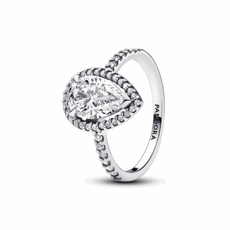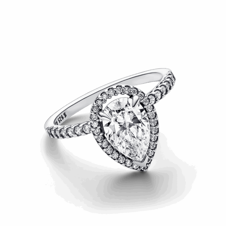 זרחי אפילו יותר עם טבעת הילה נוצצת בצורת אגס. הטבעת עשויה כסף סטרלינג וכוללת אבן אחת בולטת בצורת אגס הממוקמת מעט מעל הילה עדינה של זרקונים שקופים בשיבוץ פאווה. חוד בצורת V ושני חודי טפרים מחזיקים את האבן המרכזית במקומה. הרצועה חלקה ומלוטשת בחצי התחתון ומשובצת בפאווה בחצי העליון. הטבעת הזו עם נוכחות משמעותית והיא תפזר גלאם לכל מקום שאליו תלכי.