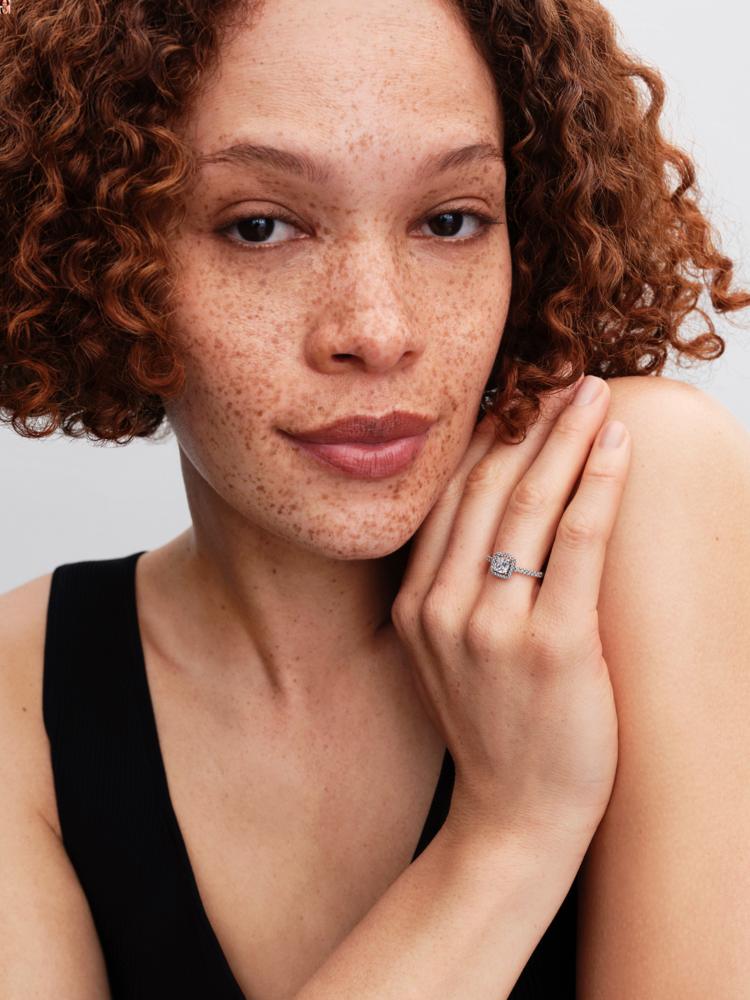 טבעת כסף סטרלינג אלגנטית מרובעת בשיבוץ זרקונים, בעיצוב נקי וקלאסי שמתאים לכל סגנון ולכל רגע. שילוב מושלם בין יוקרה נגישה לבין סטייל יומיומי שלא מתאמץ