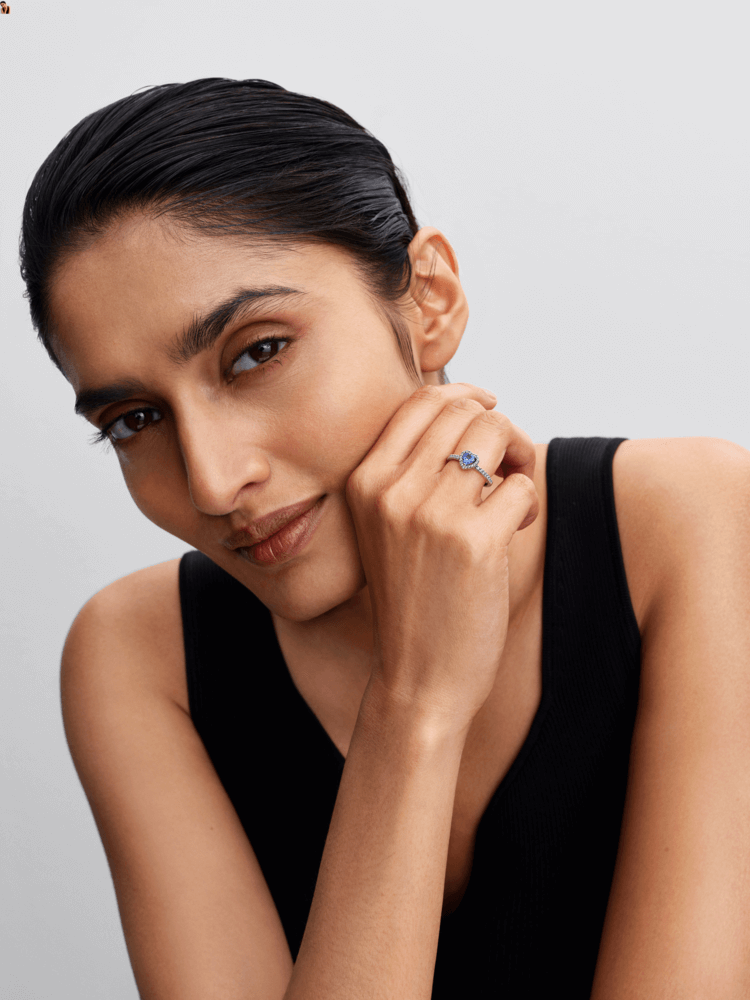 טבעת כסף סטרלינג עם לב קריסטל כחול וזרקונים נוצצים. תכשיט רומנטי עם נגיעה צבעונית שמוסיף ברק וייחודיות לכל מראה, מושלם כמתנה למישהי אהובה.