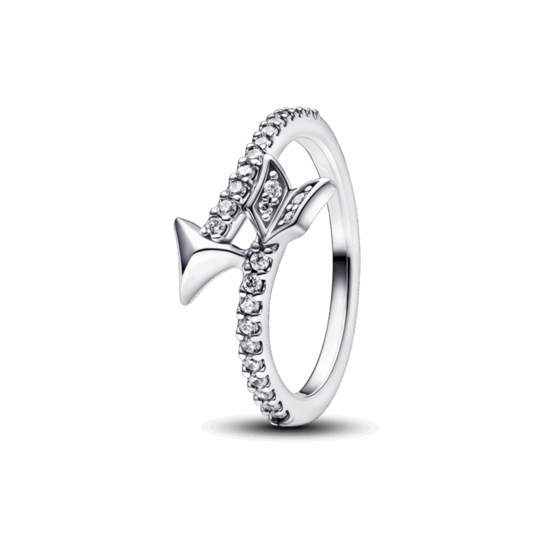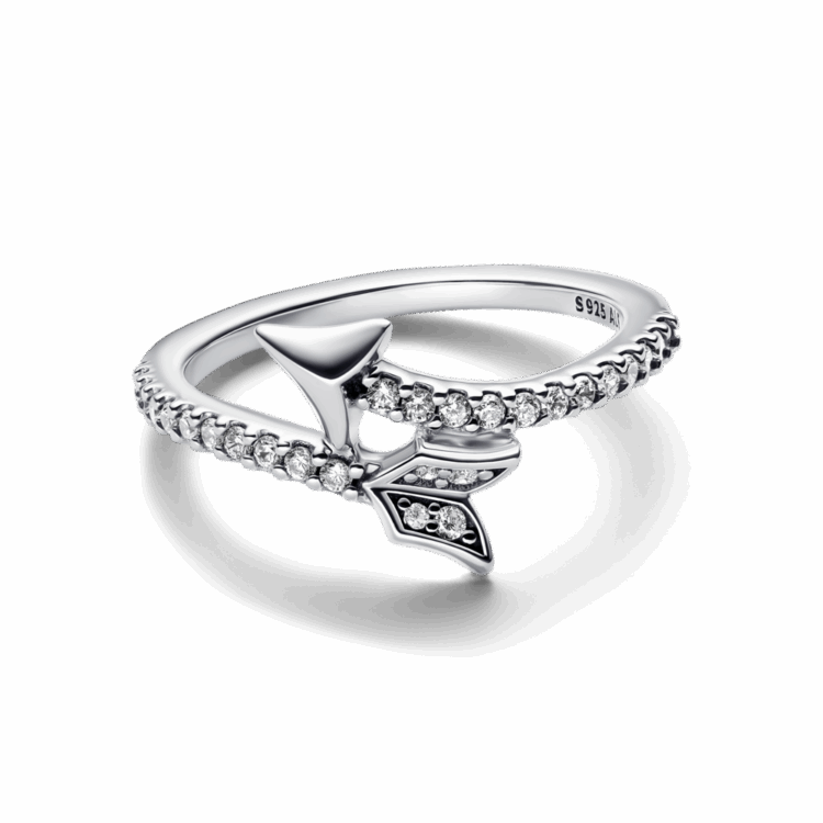 מרגישה את האהבה שבאוויר? טבעת כסף סטרלינג בצורת חץ בולט של קופידון עם זרקונים בשיבוץ פאווה וקצה מלוטש וחלק. ענדי אותה עם טבעות מינימליסטיות נוספות למראה מודרני או לכי על מראה סולידי ואלגנטי.