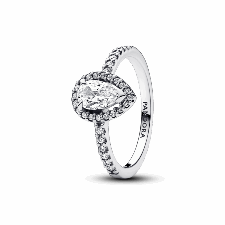 זרחי אפילו יותר עם טבעת הילה נוצצת בצורת אגס. הטבעת עשויה כסף סטרלינג וכוללת אבן אחת בולטת בצורת אגס הממוקמת מעט מעל הילה עדינה של זרקונים שקופים בשיבוץ פאווה. חוד בצורת V ושני חודי טפרים מחזיקים את האבן המרכזית במקומה. הרצועה חלקה ומלוטשת בחצי התחתון ומשובצת בפאווה בחצי העליון. הטבעת הזו עם נוכחות משמעותית והיא תפזר גלאם לכל מקום שאליו תלכי.