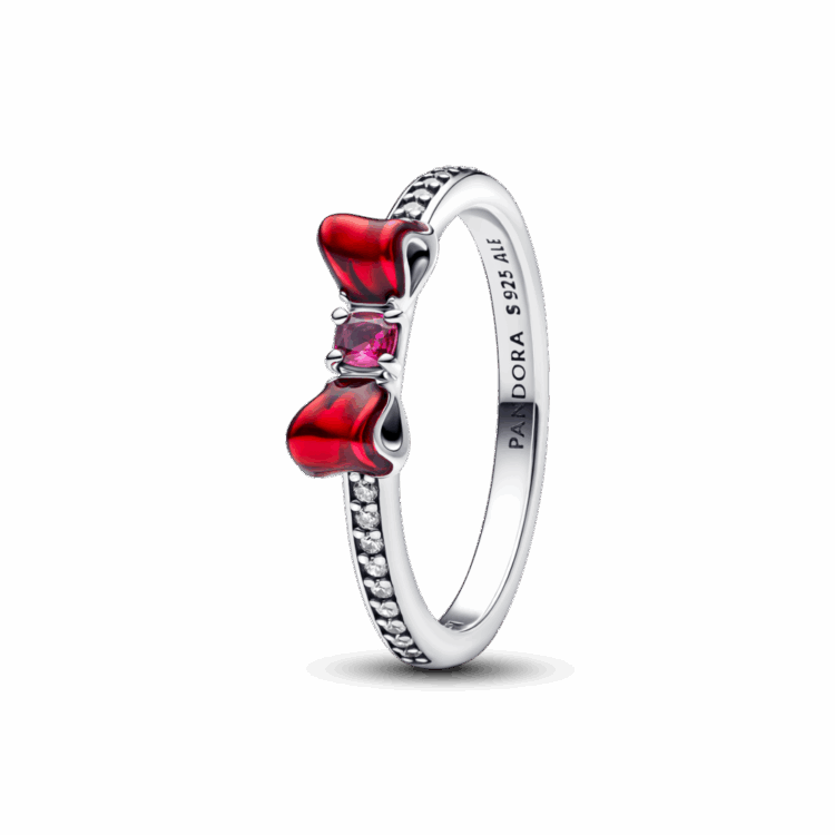 מראה, מראה שעל הקיר, מי הטבעת הכי מרשימה בעיר? עוצבה בהשראת שלגיה של דיסני, עשויה כסף סטרלינג עם פפיון במרכז בשילוב אבן קריסטל ורודה וצבע אמייל אדום. הטבעת כוללת זרקונים נוצצים בשיבוץ פאווה ולוגו חרוט על גבי החלק הפנימי. אמצי את רוחה של שלגיה, הנסיכה הידועה באדיבותה ובאופטימיות שלה.