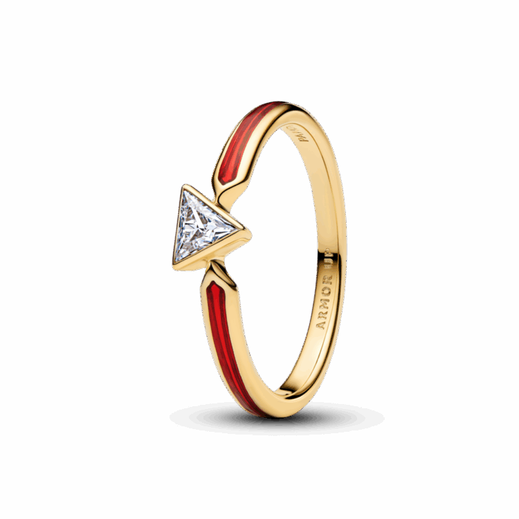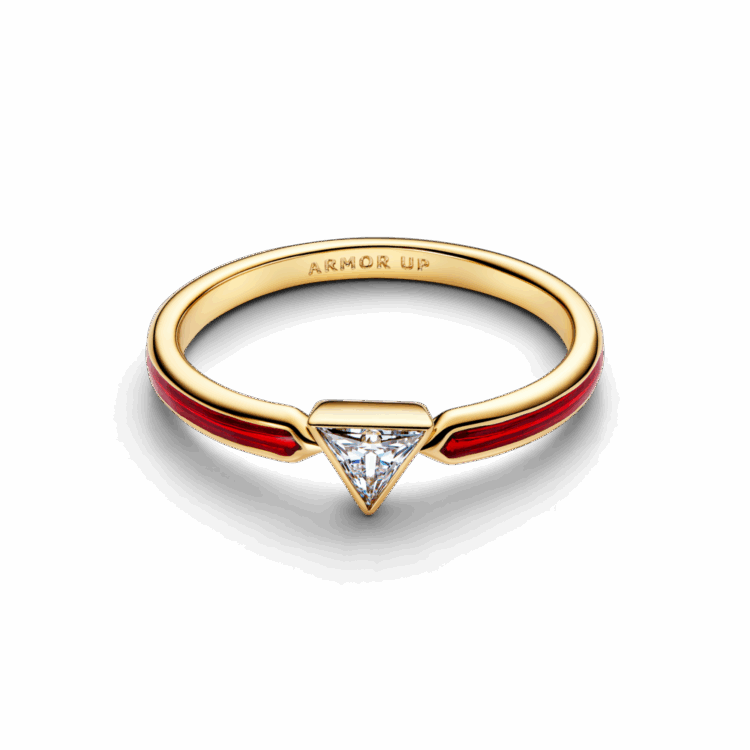 טבעת בהשראת איירון מן של מארוול, בציפוי זהב 14 קראט, משובצת זירקונים ומעוטרת אמייל אדום. עיצוב נועז ומרהיב שמסמל עוצמה וחדשנות, מושלם למעריצי מארוול שרוצים להביע כוח וסטייל.