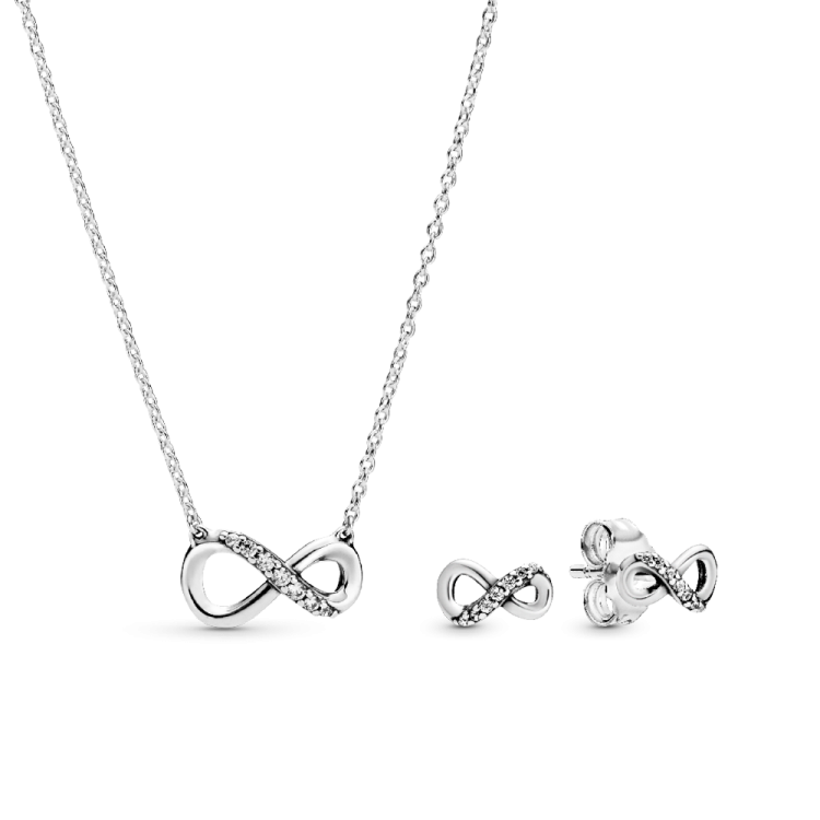 סט המורכב משרשרת כסף אינפיניטי ו-עגילי כסף צמודים אינפיניטי