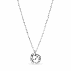 מחורזת התליון המשפחה תמיד מאוחדת, מסמלת קשרים נצחיים וכוללת שלושה עיגולים מפותלים על חישוק – שניים מהם מכסף סטרלינג מלוטש ואחד מעוטר בשורה של פאווה זירקוניה נוצצת. הסגירה כוללת דיסק המעוצב בצורת לב עם המונוגרמה Pandora Crown O לאורך צד אחד. ניתן להתאים את אורך השרשרת ובכך להעניק טאץ גימור גמיש לתלבושת שלך.