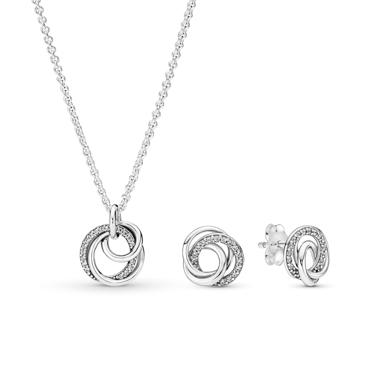 עגילים צמודים המשפחה תמיד מאוחדת מקבלים השראה מאהבה אינסופית וכוללים שלושה עיגולים המשולבים זה בתוך זה – שניים מהם מכסף סטרלינג מלוטש ואחד מעוטר בשורה של פאווה זירקוניה קובית שקופה. ההרמוניה של הצורות השונות מסמלת כיצד משפחות מלוכדות יחד למרות ההבדלים בין בני המשפחה.