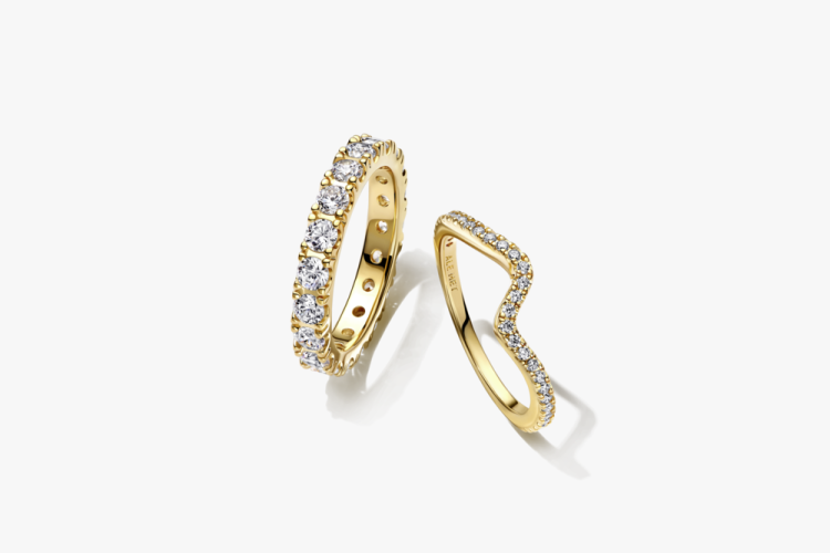 סט טבעות המורכב מטבעת ציפוי זהב גל זרקונים וטבעת ציפוי זהב אהבה נצחית