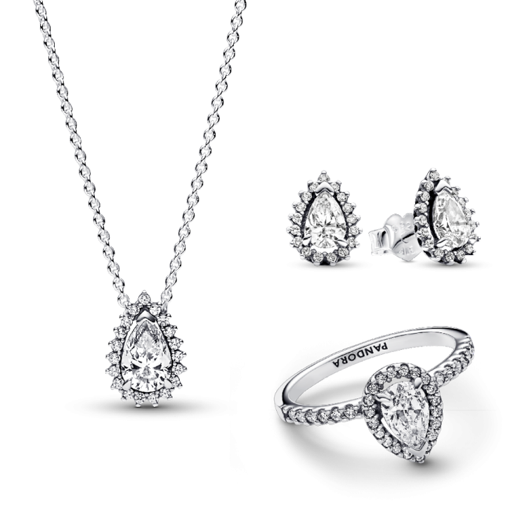 סט כסף טבעת, שרשרת ועגילים ספרקלינג היילו