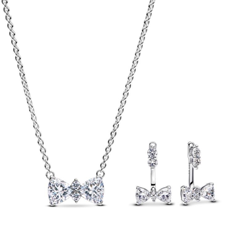 סט כסף שרשרת ועגילי דרופ פפיון