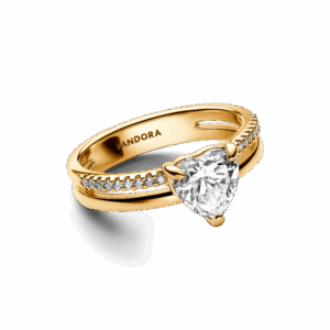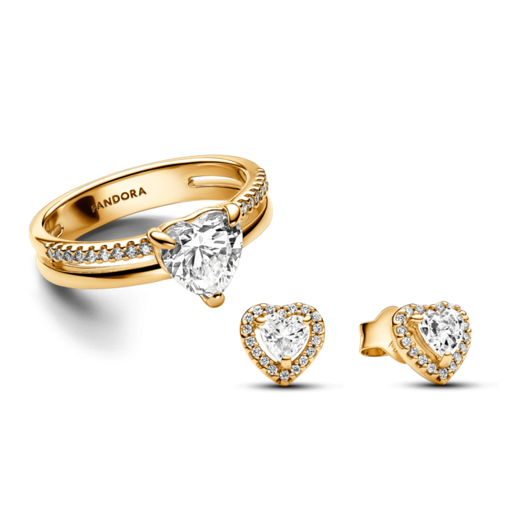 סט ציפוי זהב טבעת ועגילים לב מנצנץ