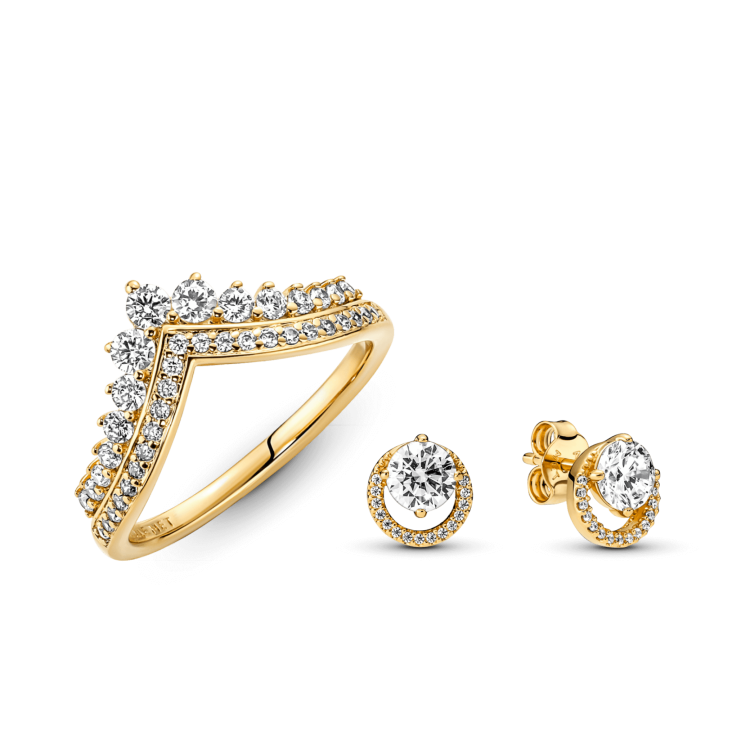 סט ציפוי זהב טבעת ועגילים צמודים הילה נוצצת