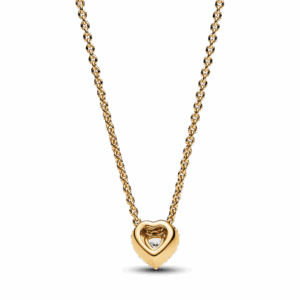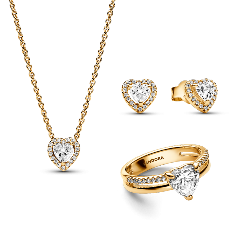 סט ציפוי זהב טבעת, שרשרת ועגילים לב מנצנץ