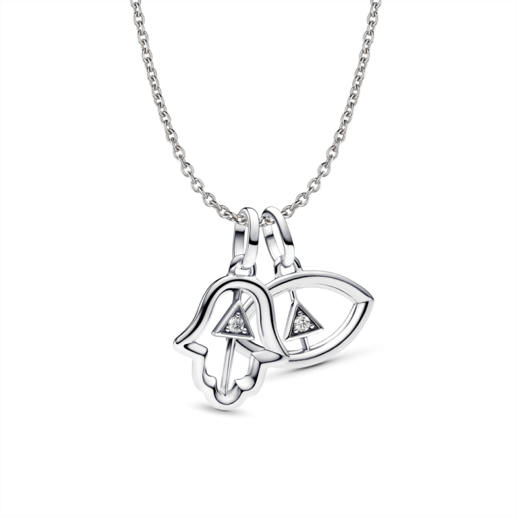 סט שרשרת כסף וזוג תליוני חמסה ועין הרע