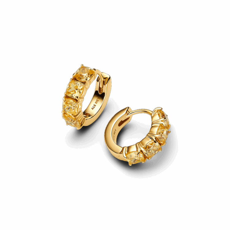 עגילי החישוק הקלאסיים מקבלים טוויסט צבעוני ושיקי במיוחד: ציפוי זהב 14 קראט בגוון חם ומדויק עם שיבוץ אבני קריסטל צהובות וסגירה נוחה במיוחד.
