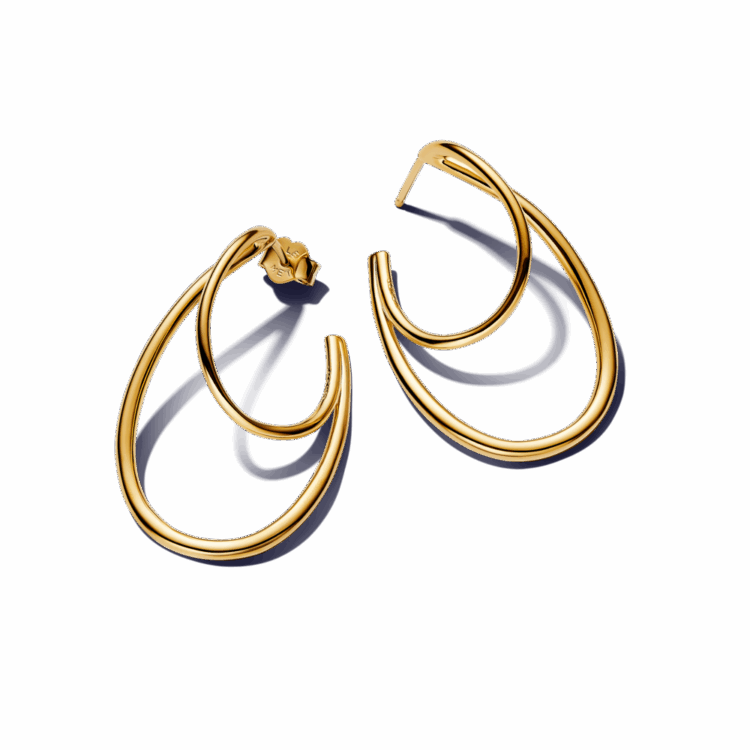 עגילי חישוק גדולים וכפולים בציפוי זהב 14 קראט ובעיצוב פתוח. הם מעוצבים בצורה גלית הלוקחת השראה מהגלים הסוחפים בחוף הים. תוכלי לשלב איתם עגילים נוספים ומעודנים יותר, או לענוד אותם לבד וליצור לוק מלא בסטייטמנט.