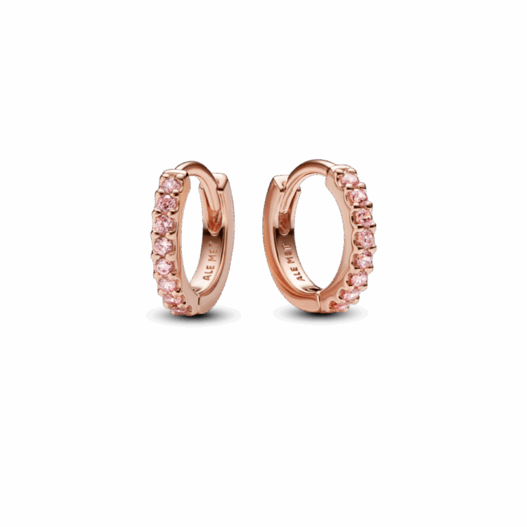 הוסיפי זריקת צבע ללוק שלך עם עגילי החישוק הקטנים והורודים שלנו. ציפוי זהב ורוד 14 קראט עם זרקונים ורודים ונוצצים. הם ישתלבו מושלם במראה שכבות מתוחכם וגם יעשו את העבודה לבדם.