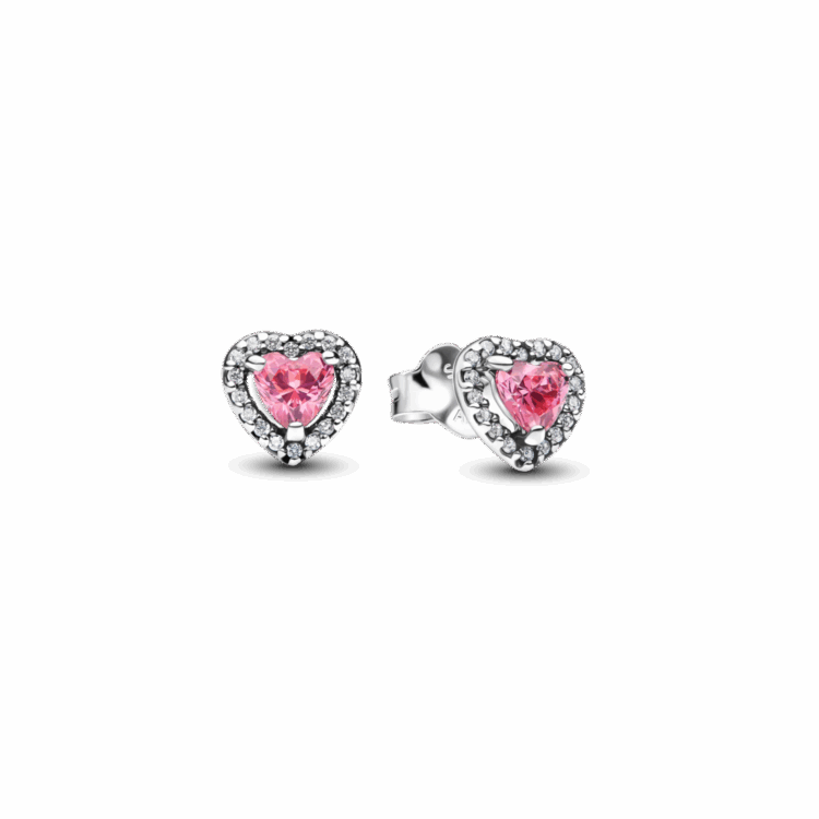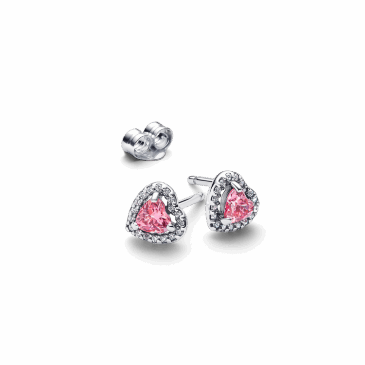 עגילי כסף סטרלינג צמודים עם אבן ורודה ומוגבהת במרכז בשילוב זרקונים נוצצים בשיבוץ פאווה. העגילים מגלמים את כל התחושות החמות והזוהרות שמגיעות עמוק מהלב.