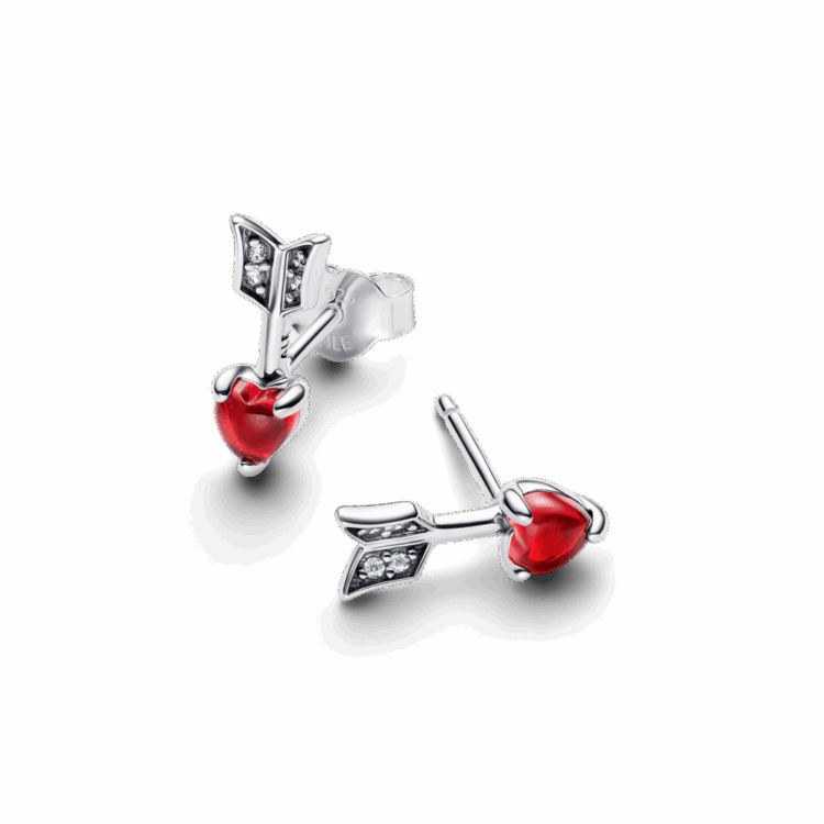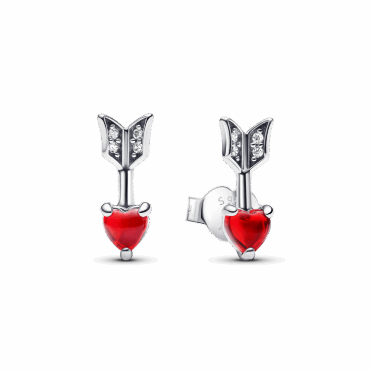 קופידון קפץ לבקר: זוג עגילים צמודים עשויים כסף סטרלינג בצורת חץ אהבה. כל עגיל כולל ארבעה זרקונים המוסיפים טאץ של נצנוץ. הקצה השני של העגילים עשוי זכוכית מוראנו אדומה בצורת לב והוא יוצר את ראש החץ. הם יהיו מושלמים ללוק קזואלי או כמתנה רומנטית לולנטיין דיי.