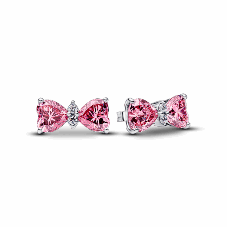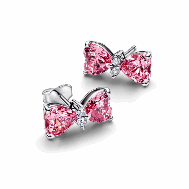 עגילי פפיון צמודים ורודים מכסף סטרלינג עם זרקונים נוצצים, עיצוב עדין להוספת צבע וזוהר אלגנטי למראה היומיומי. מתאים למתנה או לשדרוג הסגנון האישי.