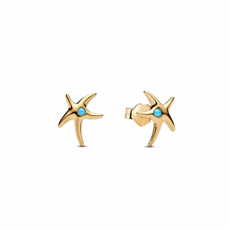 מוכנה לצלול לעומקים חדשים של שיק? עגילים צמודים בציפוי זהב 14 קראט בצורת כוכב ים בעיצוב א-סימטרי עם אבני קריסטל עגולות בצבע תכלת. ברגע שתענדי אותם תקבלי וייב מושלם של חופשה.
