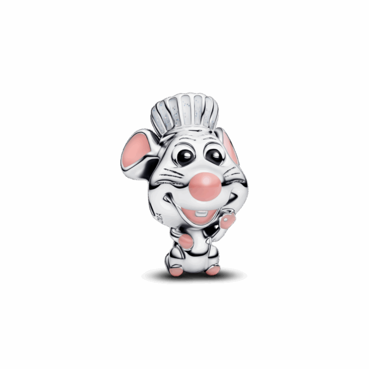 צארמ דיסני בדמותו של רמי מהסרט רטטוי, עשוי מכסף סטרלינג 925 עם אמייל ורוד, לבן ושחור נוצץ. הוסיפו אותו לקולקציית דיסני שלכם או העניקו אותו במתנה למעריץ מושבע.