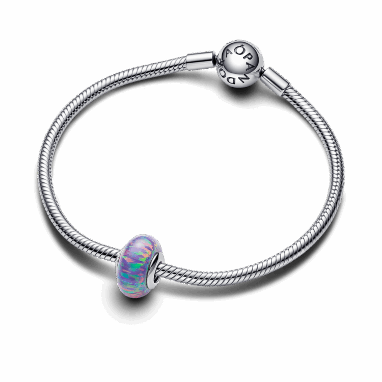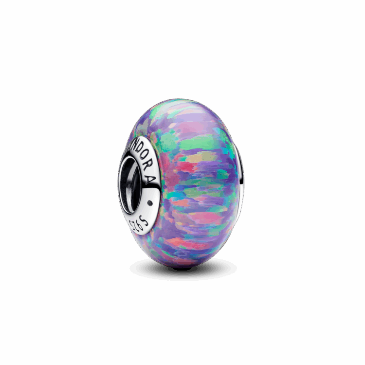 צארמ כסף סטרלינג עגול עשוי אבן אופל צבעונית בגווני לבנדר עם נגיעות מנצנצות. הוא ישתלב מושלם בתכשיט המומנטס שלך ויכניס טאץ מרענן של צבע.
