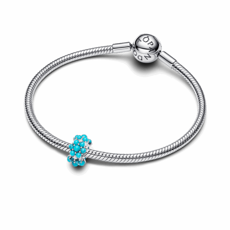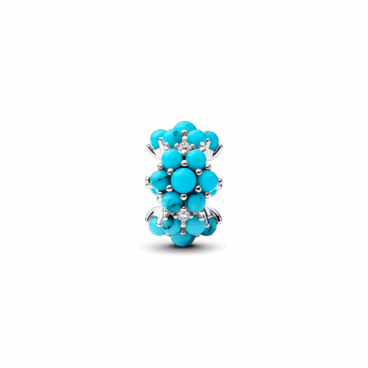 צארמ כסף סטרלינג עם זרקונים שקופים נוצצים ואבנים קטנות בצבע טורקיז. עוצב בהשראת היופי הקסום של האוקיינוס הכחול. צרפי אותו לצמיד המומנטס שלך עם צארמס קיציים נוספים.