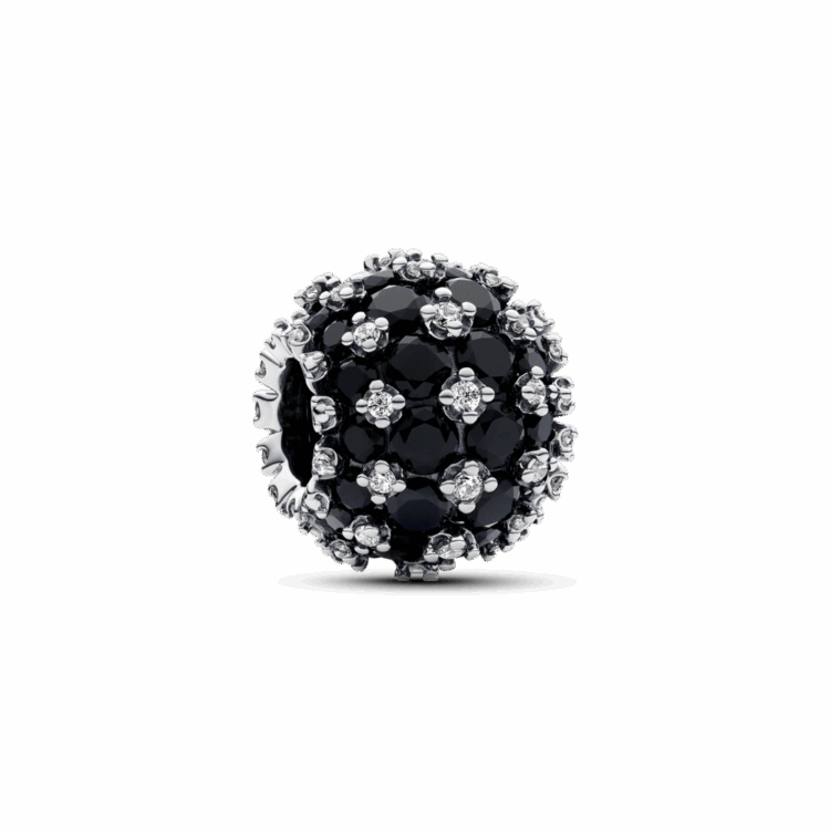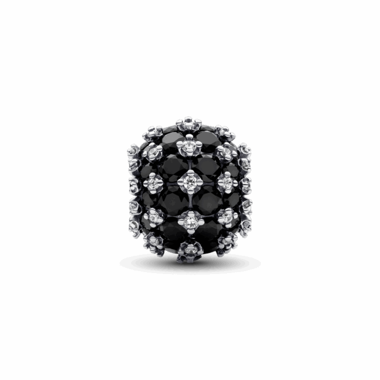 צארמ הפאווה העגול והקלאסי מקבל עדכון חדש ונוצץ בגוון שחור, מה שהופך אותו ליצירה אולטימטיבית והצהרתית. הוא עשוי כסף סטרלינג עם 88 אבנים בשיבוץ פאווה. למה דווקא 88? כי זה מספר שמסמל הישג, התקדמות והצלחה, ומזכיר אינסוף. אבני הקריסטל השחורות והזרקונים השקופים הם תזכורת נוצצת לאינסוף האפשרויות שעומדות בפנינו.
