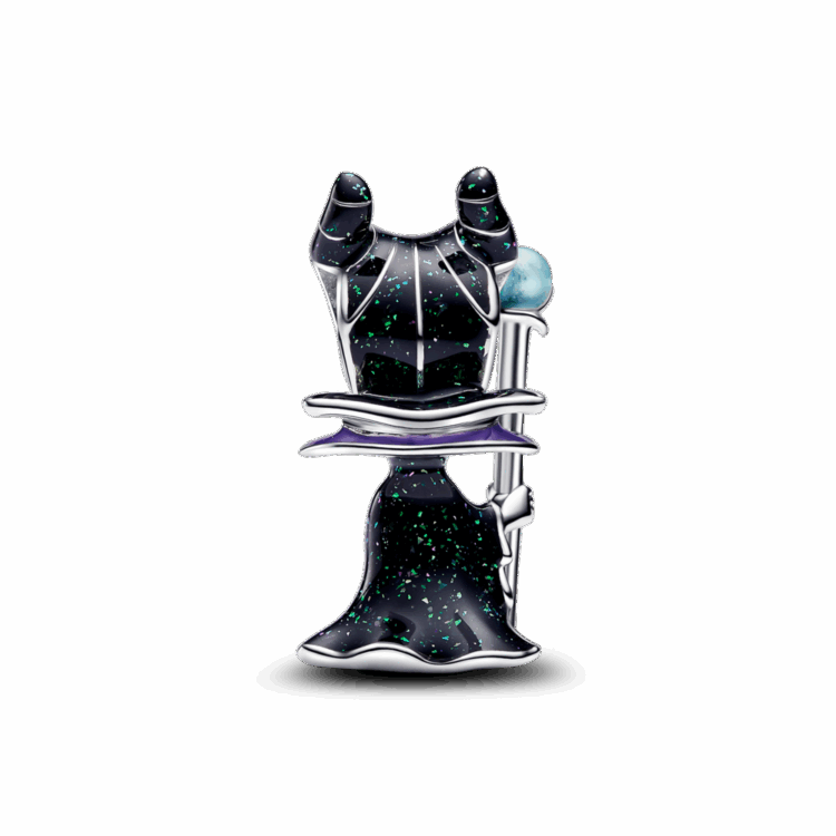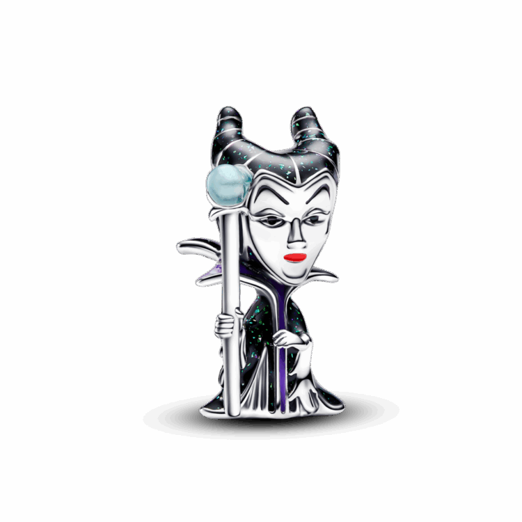 צארמ כסף סטרלינג מקולקציית דיסני, בהשראת דמותה של מליפיסנט המרושעת, עם פרטי אמייל מציאותיים ושרביט זוהרת בחושך. תיזהרי לא ליפול בקסם.