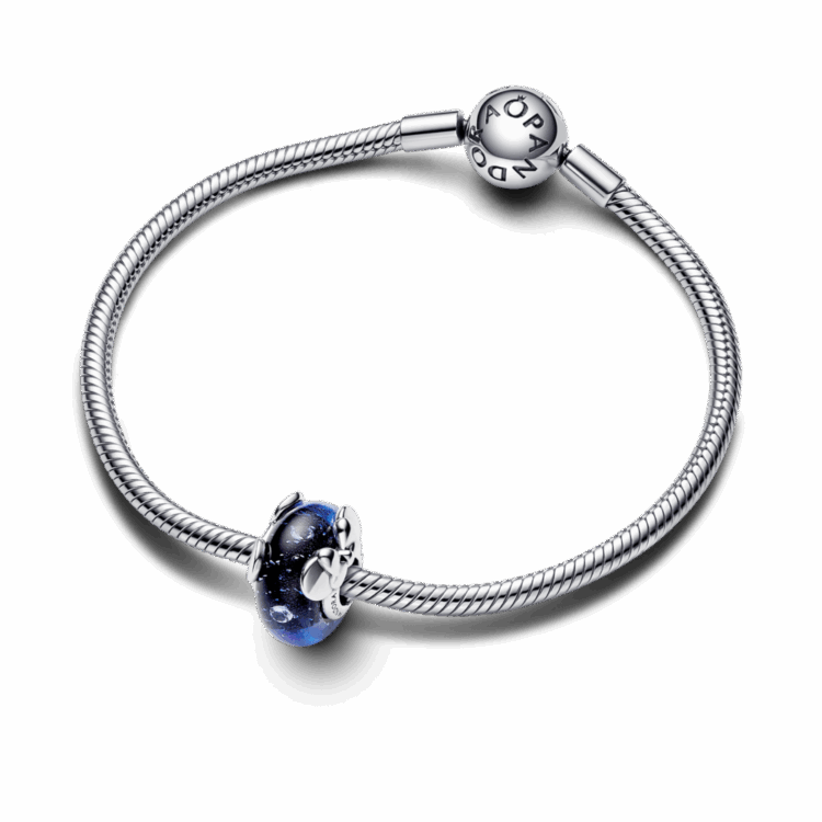 הצמד האהוב ביותר של דיסני חוזר בעיצוב חדש עם צארמ כסף סטרלינג עגול עשוי זכוכית מוראנו. הצארמ המיוחד הזה כולל אפקט מנצנץ בהשראת הפנטזיה האהובה של דיסני. הצארמ כולל בסיס כסף סטרלינג מוקף בזכוכית מוראנו כחולה בשני גוונים נוצצים עם ארבעה זרקונים עגולים שקופים תלויים בתוכה. ענדי את מיקי מאוס ומיני מאוס כל יום על השרשרת או הצמיד האהובים עליך.