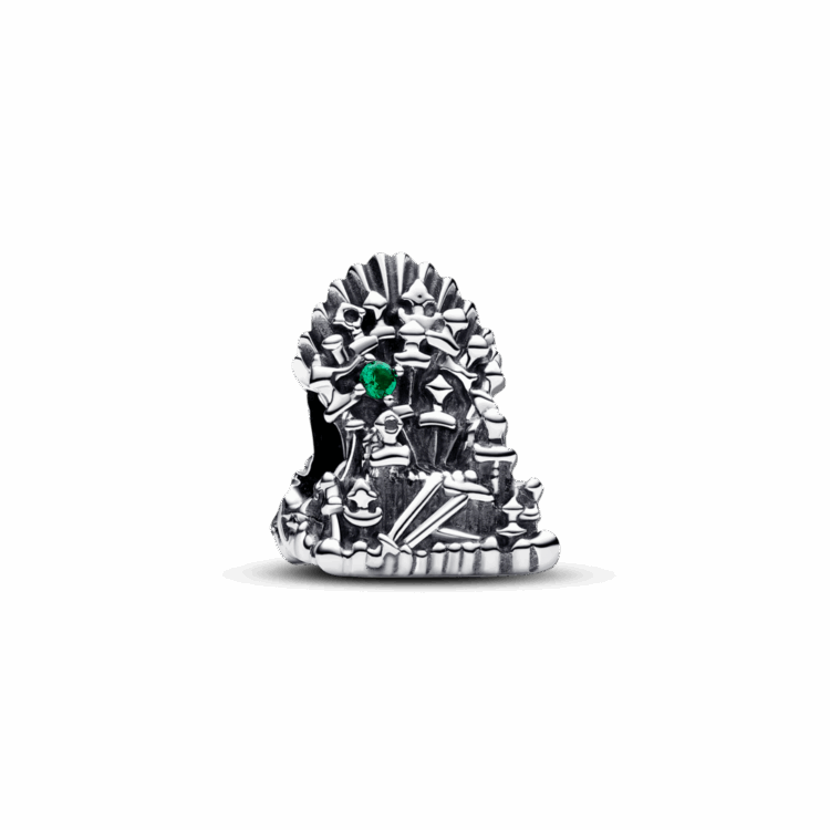 גלי את קמע הממלכה הכבושה עם צארמ כס הברזל של משחקי הכס. עשוי כסף סטרלינג עם דיטיילז שמשכפלים את כס הברזל, כולל חרבות האויבים שיצרו אותו. הצארמ מלוטש עם אבן ירוקה, והוא מייצג את המורשת, הידע והתחרות הגדולה לכבוש את כס המלכות ולשלוט בשבע הממלכות. ענדי אותו ותעברי לעולם מרגש מלא בקרבות מסוכנים.