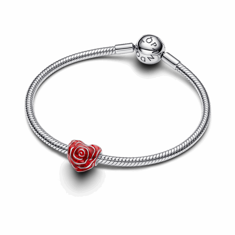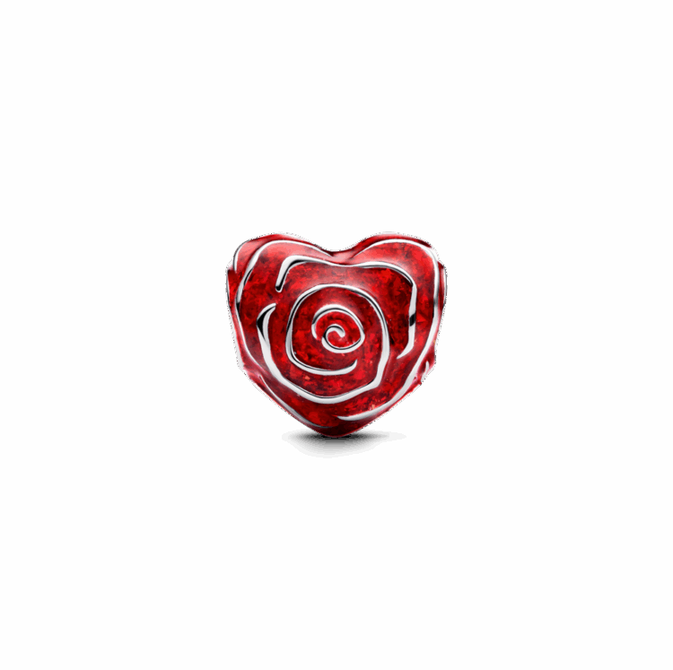 צארמ כסף סטרלינג בצורת לב עם שכבות עלי כותרת של ורד בצבע אמייל אדום. הוסיפי אותו לאוסף שלך כסמל לאהבה עצמית, או העניקי אותו לאהבה הגדולה שלך.