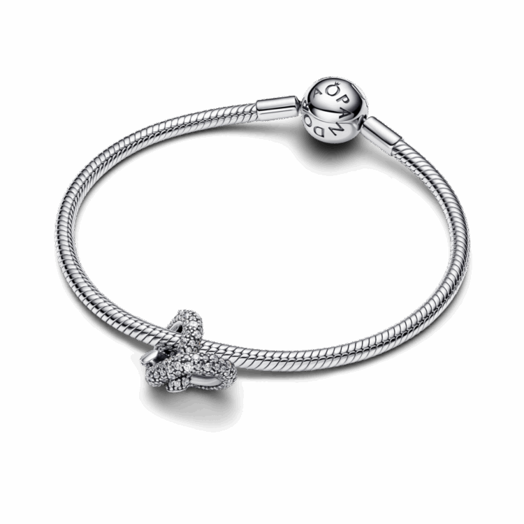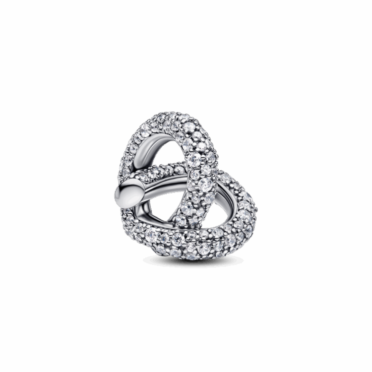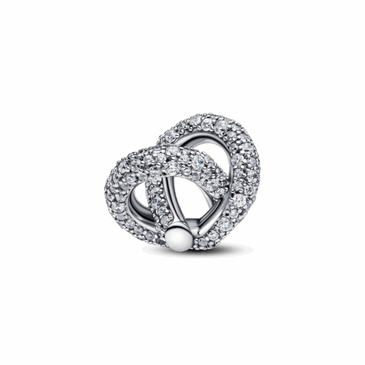 הוסיפי ניצוץ מלא בסטייל ללוק שלך: צארמ כסף סטרלינג גדול בצורת לב עם קשר אינפיניטי, מעוטר בזרקונים נוצצים בשיבוץ פאווה. הוא עוצב בהשראת אהבה נצחית וקשרים הדדיים.