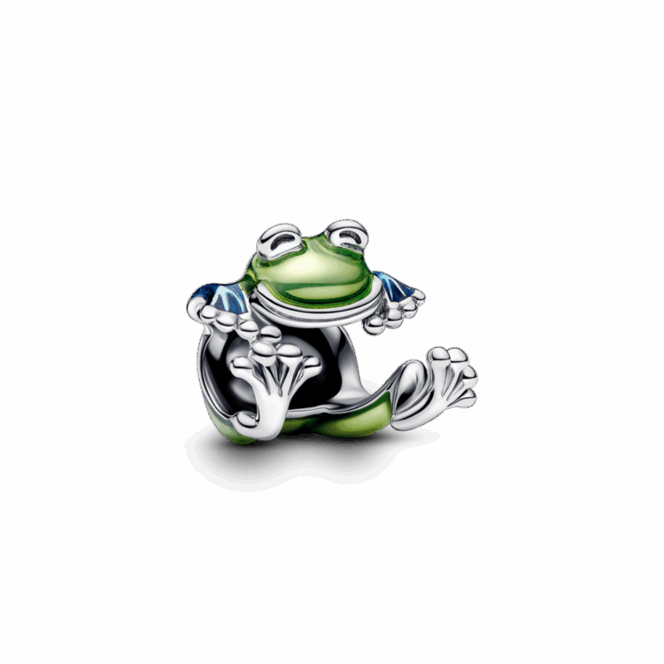 הוסיפי טאץ תוסס ללוק שלך עם צארמ צפרדע מטפס. עשוי כסף סטרלינג עם צבע אמייל בגוון ירוק-כחול בחלק החיצוני, בעל אפקט מטאלי. כולל אלמנטים ריאליסטיים כמו רגליים, ידיים, פה מחייך ועיניים. הוא מעט קטן יותר מצארמס אחרים. הצפרדע הזו מזמינה אותך לחגוג את אחד מהיצורים המדהימים של הטבע.