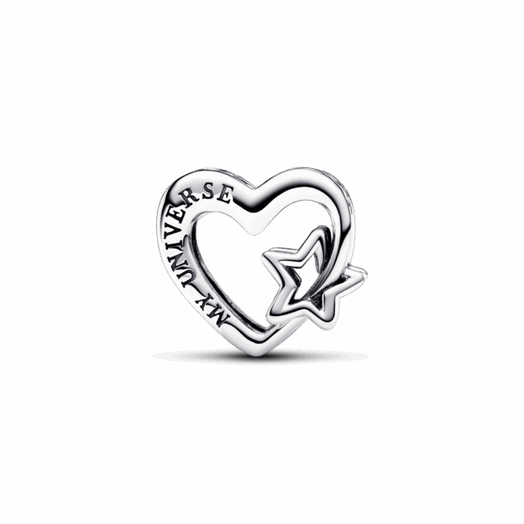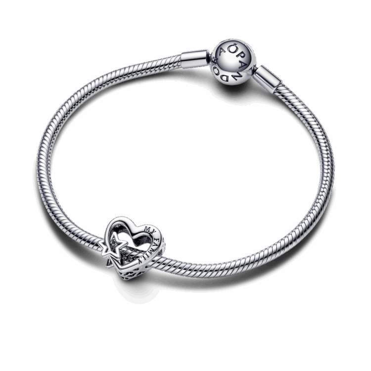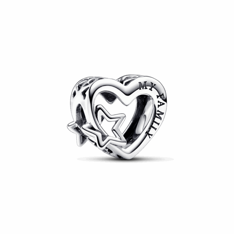 ענדי את הלב שלך על גבי הצמיד עם צארמ לב פתוח וכוכב עשוי כסף סטרלינג מקולקציית Pandora Moments. מוטיבים של לב וכוכבים מעטרים את הצארמ, בצד אחד מופיע הכיתוב My family ובצד השני My universe. הסמליות שלהם מכבדת את חשיבות המשפחה. זו מתנה מדהימה לעצמך או למישהו שאת אוהבת.