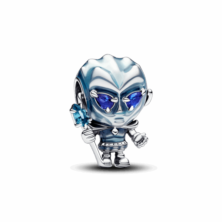 Winter is Coming עם צארמ ווקר הלבן ממשחקי הכס. עשוי כסף סטרלינג עם אמייל בצבע כחול בהיר וזוג אבנים כחולות בצורת עיניים. הדמות מחזיקה את החנית האייקונית שלו. הוסיפו את הצארמ לצמיד המומנטס שלכם ביחד עם עוד פריטים ממשחקי הכס או העניקי אותו במתנה לחובב מושבע של הסדרה האייקונית.