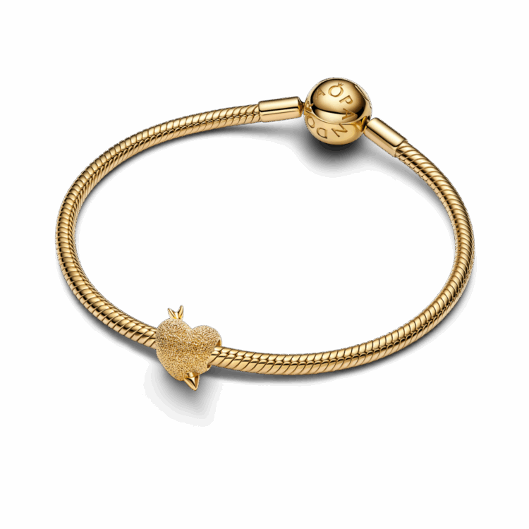 מחפשת לב זהב? צארמ לב קופידון עם חץ בציפוי זהב 14 קראט עם טקסטורת נקודות המוסיפה מרקם וממד. שימי לב: צארמ זה קטן יותר מצארמס Pandora Moments הסטנדרטיים.