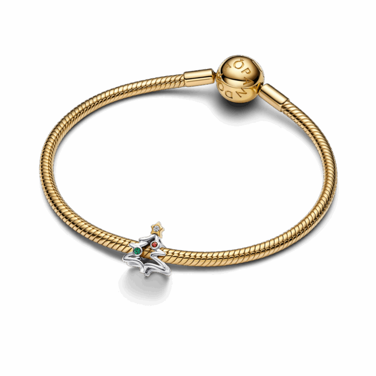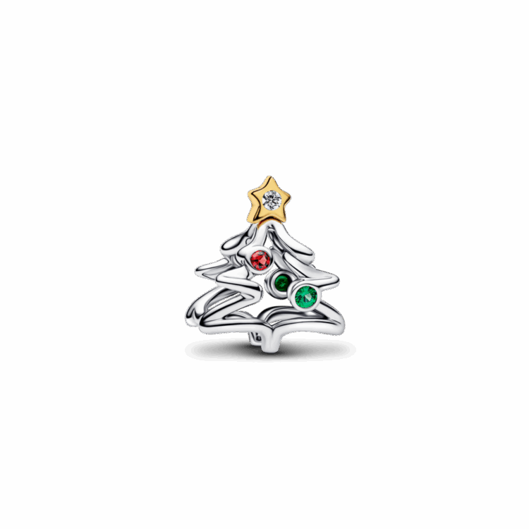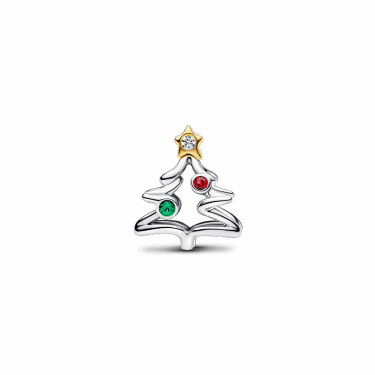 צארמ עץ חג המולד עשוי כסף סטרלינג וציפוי זהב 14 קראט, משובץ זרקונים וקריסטלים ירוקים ואדומים. עיצוב חגיגי ושמח שמביא איתו את רוח החג והקסם לחורף. מושלם כמתנה עונתית מלאת אור ואהבה.
